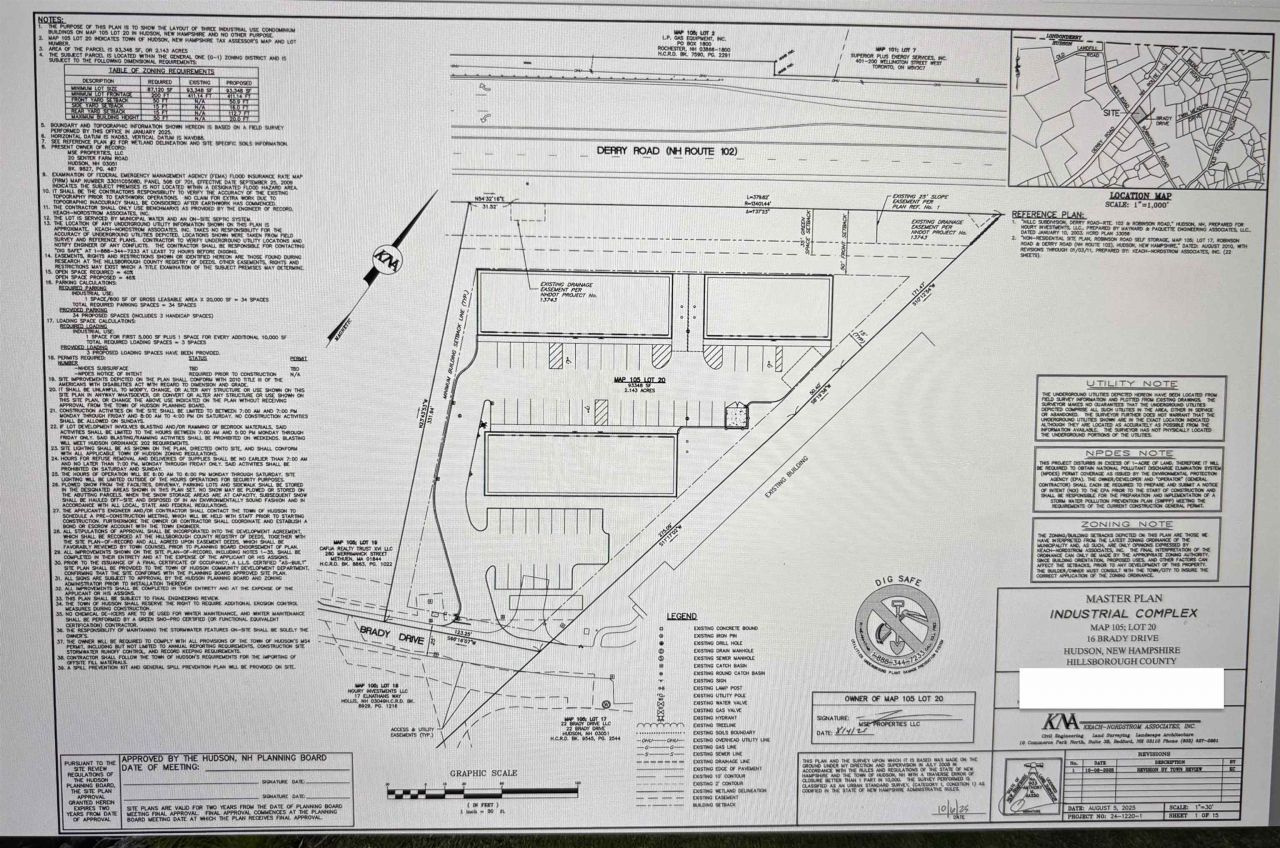 Shovel-ready development opportunity in Hudson, NH - 16 Brady Drive, directly adjacent to the Route 102 corridor. Permits are in hand and the site is ready for immediate construction with approvals for three purpose-built contractor-bay buildings: two 6-unit structures plus one 4-unit structure (16 total bays). This is the product the market can't get enough of: small-bay flex/industrial space planned specifically for contractors, specialty trades, and light industrial users who need secure, practical space for vehicles, equipment, storage, and daily operations. Instead of waiting months (or years) for approvals, you can move straight to building and delivering inventory. Multiple profit paths: develop and sell individual bays to owner/users, sell as industrial condos, pre-lease and stabilize for long-term cash flow, or hold as a scalable flex portfolio. The three-building layout supports phasing - match construction to demand and manage capital efficiently. Strategic location, strong visibility, and convenient access across Southern New Hampshire and into the Massachusetts market make this a standout for both builders and investors. Permits and supporting documentation are available for review.