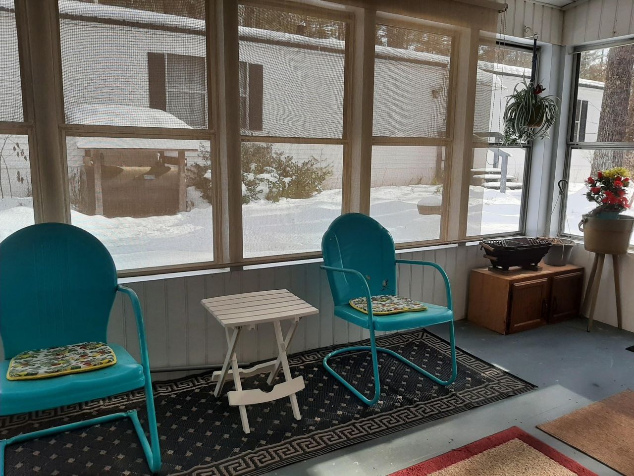 Delightful lot on level land, space for gardens, enclosed porch to enjoy throughout the seasons. A Carport! That's right, a Carport! This home offers two bedrooms, 1 full bath, 1 half bath. The home has had a complete makeover, new laminate flooring, new carpet, new siding inside carport + soffit. New toilets, new sinks. New Kitchen Cabinets, Glass Tile Kitchen, New Paint Job... Must See, just precious inside... showings begin immediately! This is a 55 & Older Community, all parties must pass Park Approval*, see application online.