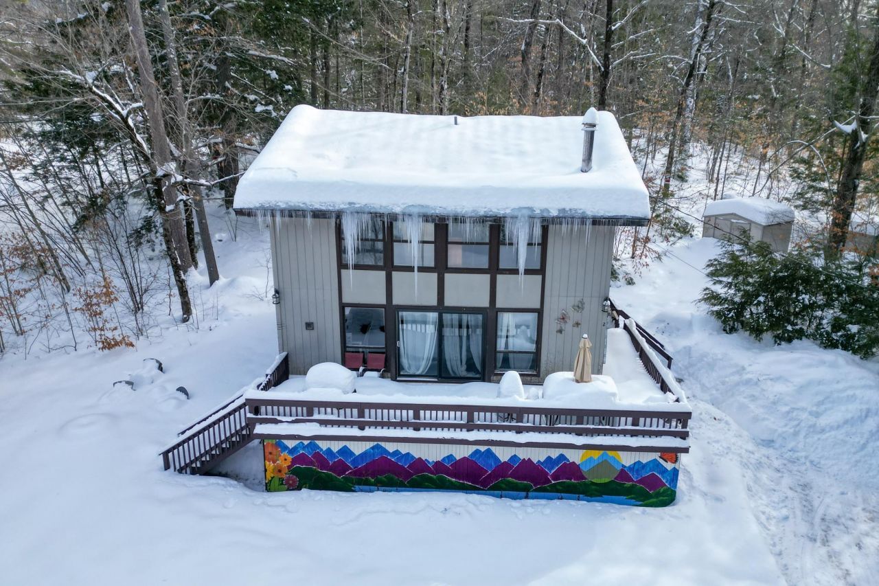 Just 10 minutes to North Conway! You'll recognize this 4 bedroom, 1.5 bath home in Eidelweiss Village from the cheerful mural on the front! A quick 5 minute walk brings you to the residents-only beach on Pea Porridge Pond, one of three ponds you'll have access to. Inside, you'll find an open floor plan with life-proof vinyl plank flooring and a cozy pellet stove for those chilly mountain nights. Mudroom area with laundry has a door to lead into the main living space, with a living room, hearth with the pellet stove, a dining area, and kitchen with granite countertops. Full bathroom rounds out this floor. The second floor has 4 bedrooms and a half bathroom. Recent updates include central air and a new furnace (2023), hot water heater (2023), and electrical panel (2023). The 4-bedroom septic system was replaced in 2021. The lower level features a unique element: a large granite boulder incorporated into the space. It's a great game room/hangout space. Outside, there's a spacious deck for entertaining, a relaxing firepit area, and convenient storage space under the deck for kayaks, paddleboards, and all your lake gear. Eidelweiss Village amenities include a playground, basketball court, and multiple sandy beaches perfect for summer days. You're ideally situated near King Pine and Cranmore ski areas, Settlers Green Outlets, and all the award-winning restaurants and outdoor activities that make North Conway so desirable. This property has been used as a short-term rental since it was purchased in 2021.