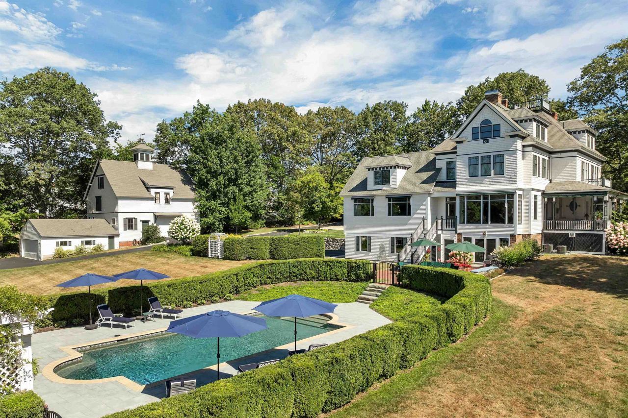 Built in 1895, this magnificent Victorian residence stands as one of Wolfeboro's finest off-lake estates?where historic craftsmanship meets contemporary luxury living. Set on 2.7 acres along the town's idyllic North Main Street, the home offers rare privacy within walking distance to the village and Lake Winnipesaukee. Inside, original woodwork, oversized windows and five fireplaces evoke a grander era, while thoughtful renovations introduce contemporary comfort. The designer kitchen features Miele, Bosch and Wolf appliances along with custom cabinetry and a butler's pantry with a copper sink. 7 bedrooms and 5 baths provide ample space for family and guests. Gathering rooms, a movie room and a workshop add versatility, while a ground-level studio opens to a 3525 patio ? perfect for a painter, potter, or summer entertainer. The original 2,500 sq. ft. carriage house includes a four-car garage ideal for collectors. Outdoors, an 1840 heated pool with swim jet and pergola anchors lush, landscaped grounds. With town approval, the property would also be suitable for a luxury inn, wedding venue or condominiums. Property is on public water and sewer. Meticulously maintained and lovingly restored, this home represents Wolfeboro's architectural heritage at its most graceful ? a timeless in-town estate that balances history, artistry, and modern ease.